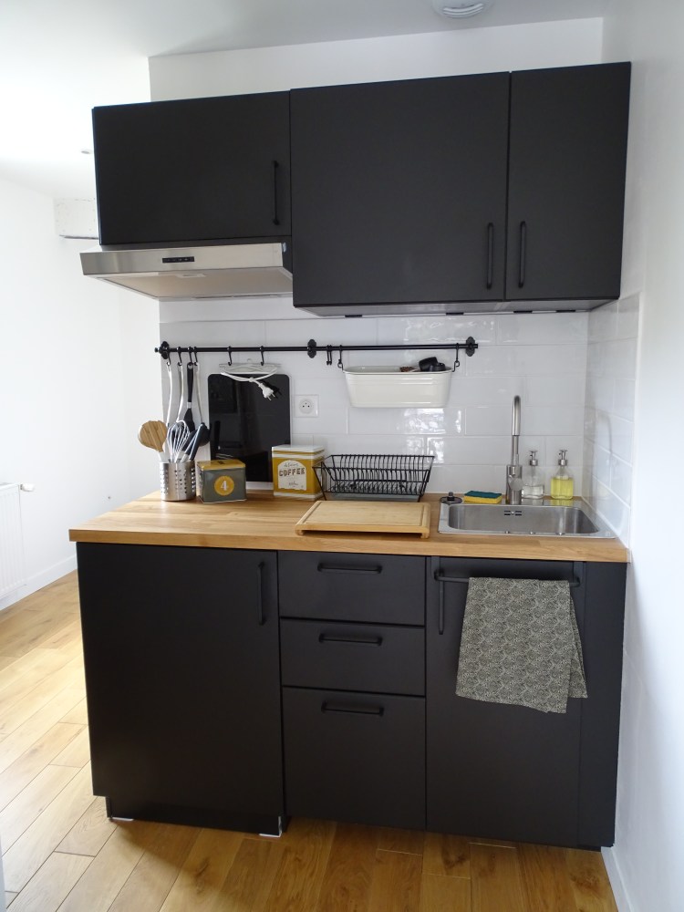 Vous pourrez profiter de la cuisine toute équipée et du salon style industriel pour partager les repas ou de la terrasse pour vous relaxer.